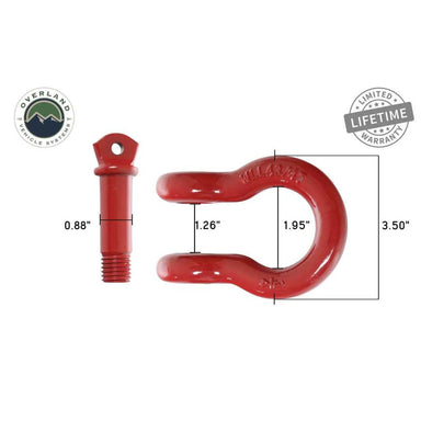 Overland Vehicle System 3/4 Recovery Shackle in Red is heavy duty forged D ring style shackle. Each OVS shackle has a two stage powder coat....