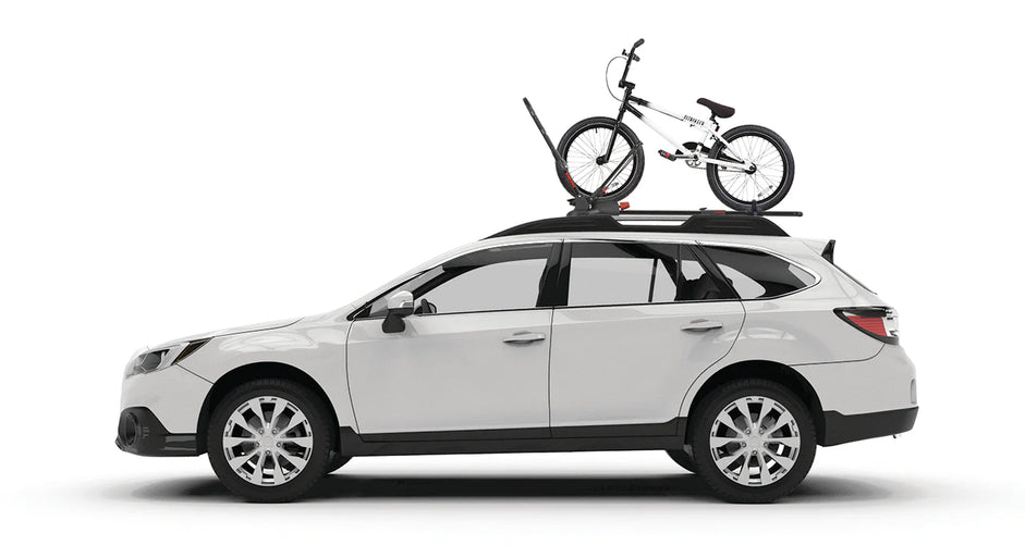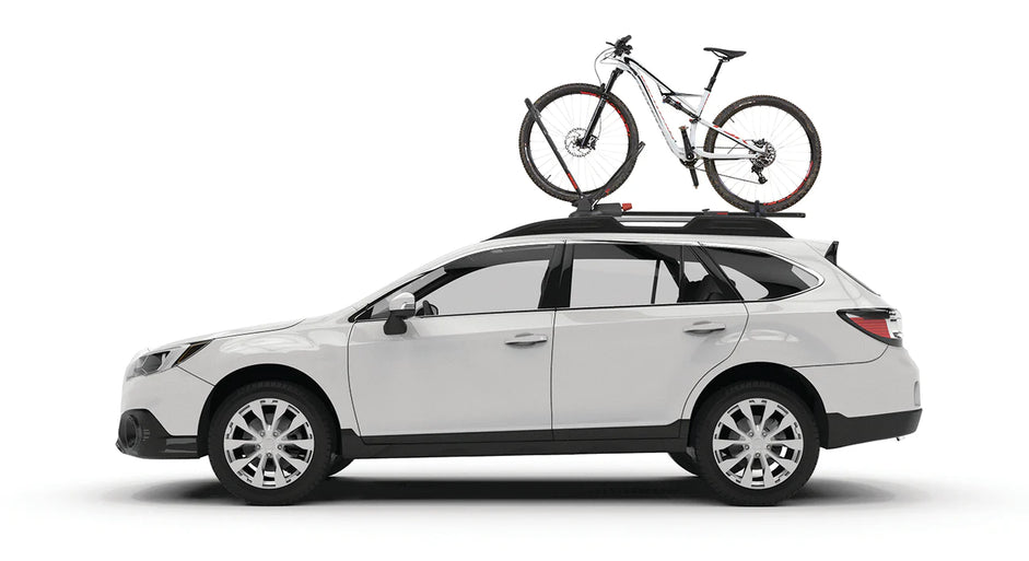 Friends will double-take when they see our most versatile, aerodynamic bike mount on your car. It carries your complete bike — no wheel removal needed. The universal mounting system fits nearly any crossbars you can think of.