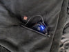 - Integrated USB plug with storage pocket (battery bank sold separately)
