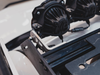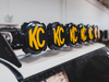 Cut and bent from 1/4” aluminum, these brackets are strong, sleek, and position the KC Gravity Pro6 light bar perfectly on the front of the rack.