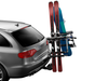 Holds up to 6 pairs of skis or 4 snowboards on 2" class two receiver racks. Holds up to 4 pairs of skis or 2 snowboards on 1 1/4" receivers and Thule Spare Tire carrier