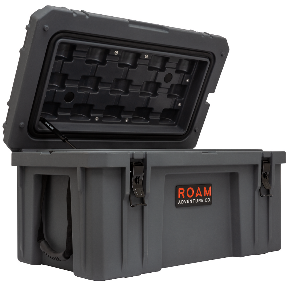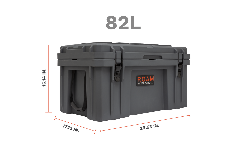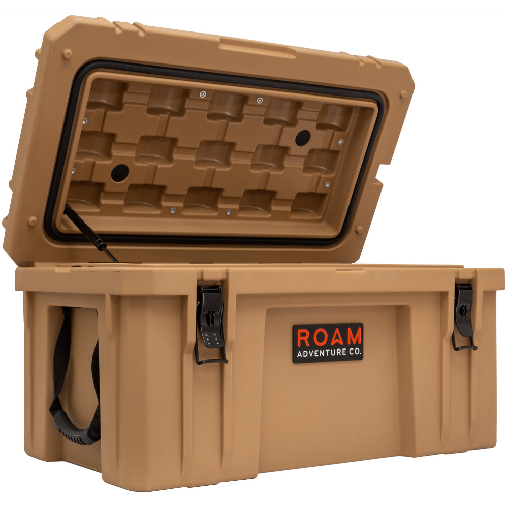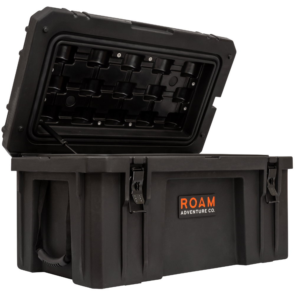 The ROAM 82L Rugged Case is a heavy-duty storage case that comes in 4 color options and is ideal for storing your dry goods, camping equipment, or recovery gear in the trunk area or the back of a Jeep or Subaru. This premium case features a durable LLDPE shell, Nylon rope handles, steel lockable latches, and a dust/waterproof gasket seal that makes sure your gear always stays protected no matter the terrain. Having an interlocking design makes stacking and pairing simple no matter the amount of gear you carry.
