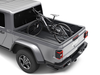 Fully adjustable, upright bike carrier designed for the inside of the truck bed.